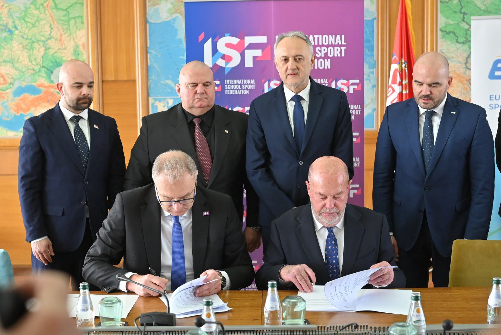 Ugovor su potpisali predstavnici Međunarodne federacije školskog sporta (ISF) i Evropske federacije školskog sporta (ESSF) sa prvim čovekom svetske i evropske karate organizacije Antoniom Espinozom (WKF – World Karate Federation / EKF – European Karate Federation).